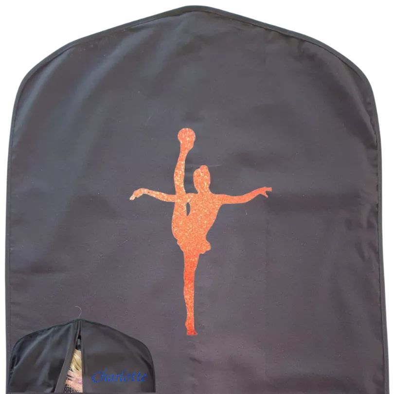 Voici la housse de justaucorps noir, personnalisable avec un motif en flocage appliqué au dos de la housse. Devant, choisissez le coloris et le modèle de l'écriture idéal pour le flocage du prénom.