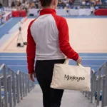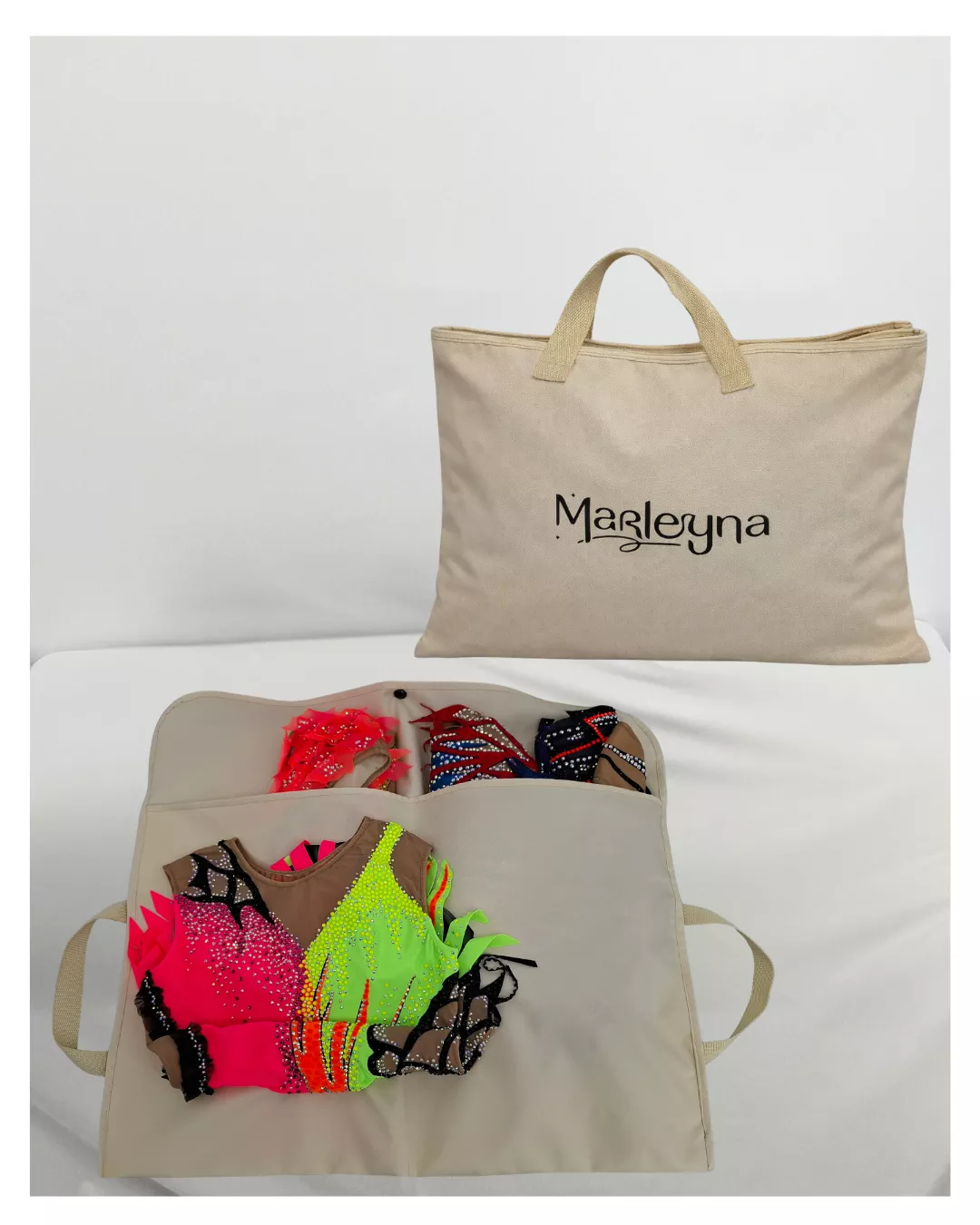 Le sac pochette Marleyna a été conçu pour ranger et transporter facilement les justaucorps de gymnastique lors des déplacements vers les spectacles et compétitions.