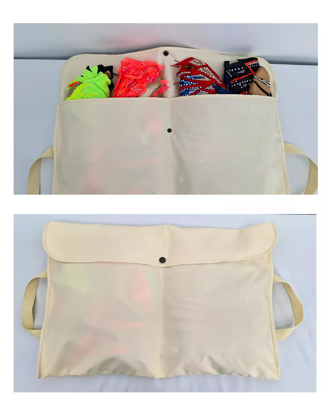 Ce modèle d’une grande capacité, peut contenir jusqu’à 8 à 10 tenues, dans une même pochette, 5 justaucorps par poches, tout en les protégeant pendant le transport.