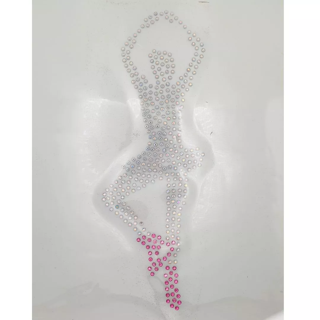 Ce transfert de dimension 20x7,5 cm sublimera votre support. Strass coloris cristal AB et rose.
