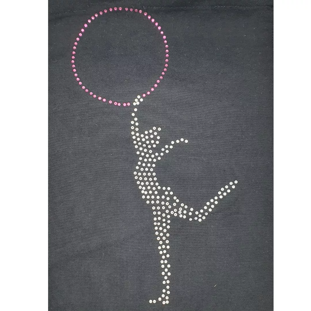 Quoi de mieux que ce superbe transfert à poser soi-même. Il est de dimension 26x15,5 cm et est composé de strass ss6. Il sublimera votre support, votre tote-bag, housse de justaucorps, sac à dos de gym.